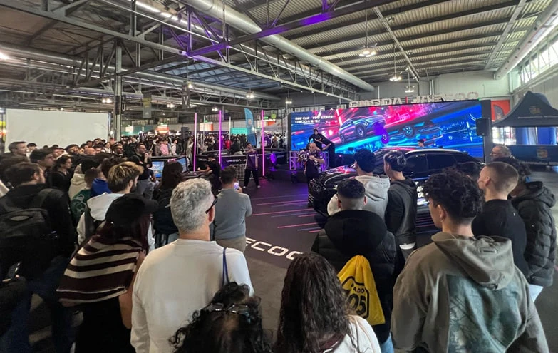 برای گرمتر شدن فضا، اکودا–لوکانو جهانی مسابقه محبوب «لیگ راکتی» را در غرفه اجرا کرد؛ مسابقهای که ترکیبی از فوتبال و رقابت خودرو است و حالوهوای آن با روحیه جوان و سرعتدوست برند هماهنگ بود.