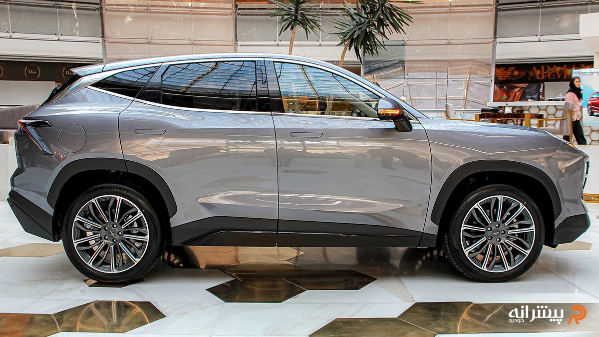 در نمای جانبی خط سقف شیبدار کوپهمانند، دستگیرههای در مخفیشونده و تزئینات کرومی دو رنگ به چشم میخورند. بخش عقب با چراغهای دوتکه Y شکل که تا روی گلگیرها امتداد یافته، دیفیوزر و اسپویلر سقفی دو تکه، ظاهری تهاجمیتر ایجاد کرده است. ابعاد بدنه شامل طول ۴۵۹۰، عرض ۱۹۰۰ و ارتفاع ۱۶۸۵ میلیمتر بوده و رینگها در نسخههای مختلف ۱۸ تا ۲۰ اینچ عرضه میشوند.