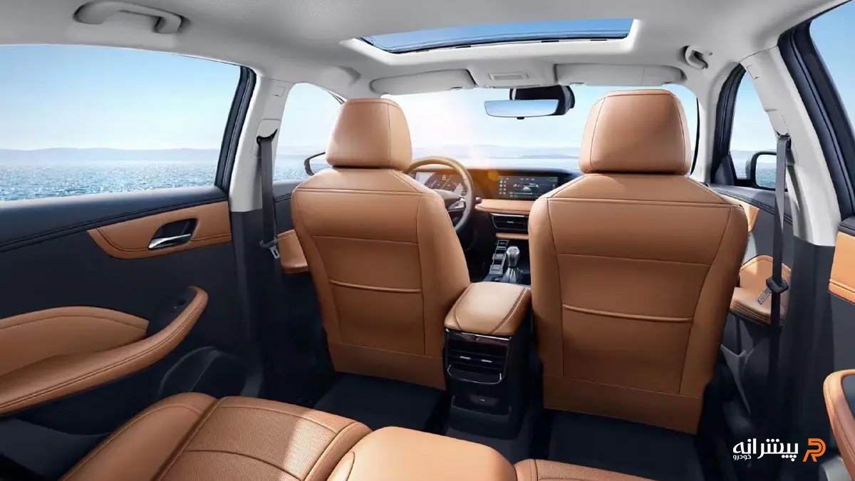 فضای پا و سر برای سرنشینان عقب مناسب است، به ویژه با توجه به فاصله محوری طولانی، اما عرض کابین ممکن است برای سه نفر بزرگسال در ردیف عقب کمی تنگ به نظر برسد. پنل ابزار دیجیتال با نمایشگر ۷ اینچی پشت فرمان اطلاعات ضروری مانند سرعت، دور موتور و مصرف سوخت را نشان می دهد، در حالی که سیستم سرگرمی با صفحه نمایش لمسی ۱۰.۲۵ اینچی در مرکز داشبورد قرار گرفته و از قابلیتهای اتصال به گوشی هوشمند از طریق بلوتوث و USB پشتیبانی می کند.
