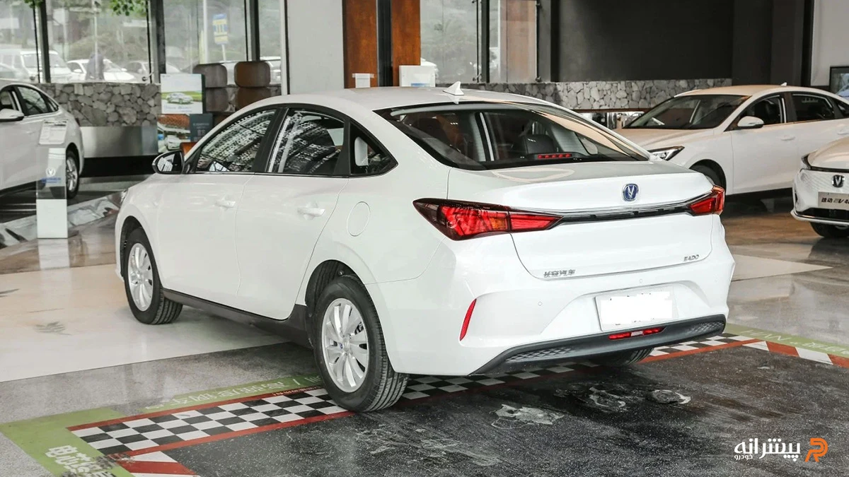 نمای عقب با چراغهای پیوسته و طراحی ساده، ظاهر اقتصادی خودرو را حفظ کرده و رینگهای آلومینیومی ۱۷ اینچی، جلوهای متعادل به آن میبخشد. بدنه با تمرکز بر آیرودینامیک طراحی شده تا برد حرکتی را افزایش دهد، اما در مقایسه با مدلهای لوکستر، عناصر تزئینی کمتری دارد.