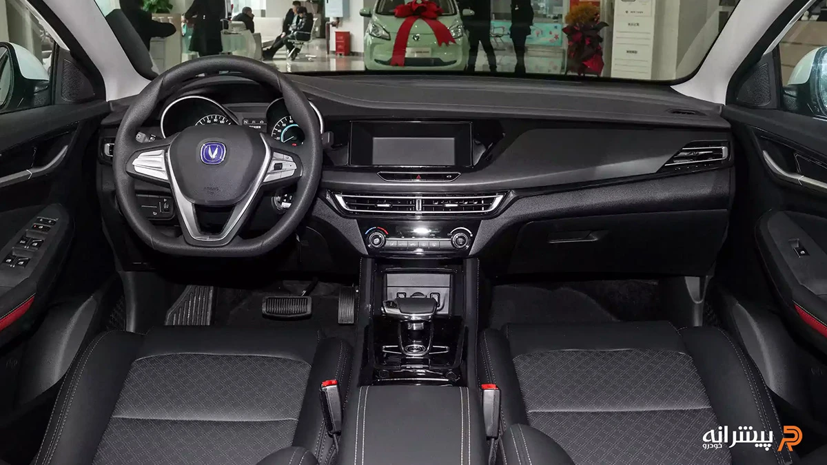 فضای داخلی برای پنج سرنشین طراحی شده و فاصله محوری طولانی، راحتی مناسبی در ردیف عقب فراهم میکند. صندلیها با روکش چرمی مصنوعی پوشیده شدهاند و تنظیم دستی صندلی راننده در شش جهت و سرنشین جلو در چهار جهت، گزینههای پایهای برای تنظیم موقعیت ارائه میدهد.