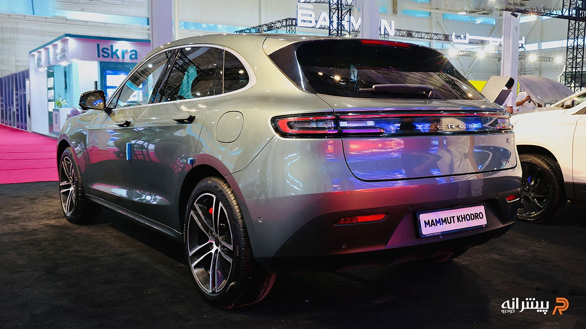 در نمای عقب، چراغهای LED سراسری، شیشه با شیب نسبی و سپر یکپارچه بدون خروجی اگزوز مرئی، ماهیت نیمهبرقی خودرو را برجسته میسازد. بدنه با سطوح نرم و جزئیات هوشمند مانند حسگر لیدار در بالای شیشه جلو، از گرایشهای جهانی خودروهای برقی پیروی میکند. وزن کلی ۲۳۳۵ تا ۲۳۷۰ کیلوگرم بسته به پیکربندی، تعادل مناسبی بین استحکام و کارایی فراهم آورده است. این طراحی، هرچند الهامگرفته از مدلهایی مانند پورشه ماکان در انحنای سقف و چراغها، بر کاربردی بودن در شرایط شهری و جادهای تمرکز دارد.