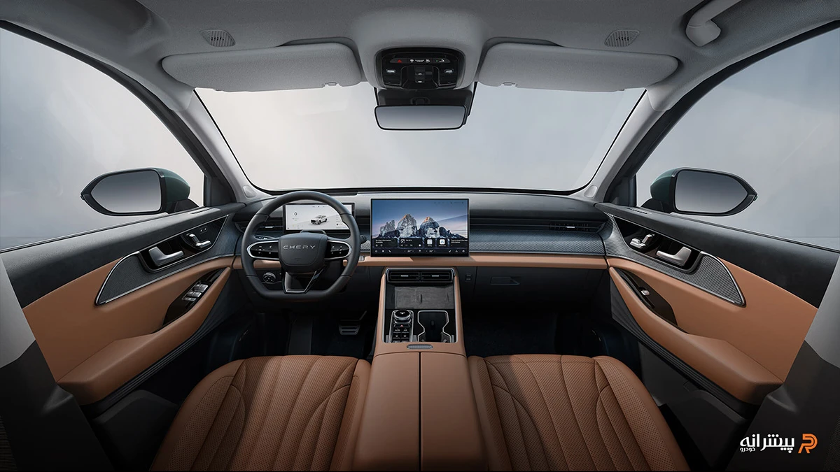 کابین با ترکیب رنگ مشکی، سفید و مارون، فضایی جادار برای هفت سرنشین فراهم می کند؛ هرچند ردیف سوم بیشتر برای کودکان مناسب است و مثل سایر خودرو های ۷ نفره چندان فضای راحت و بزرگی ندارد. داشبورد شامل دو نمایشگر ۱۲.۳ اینچی یکپارچه برای پشت آمپر و سیستم سرگرمی است.
