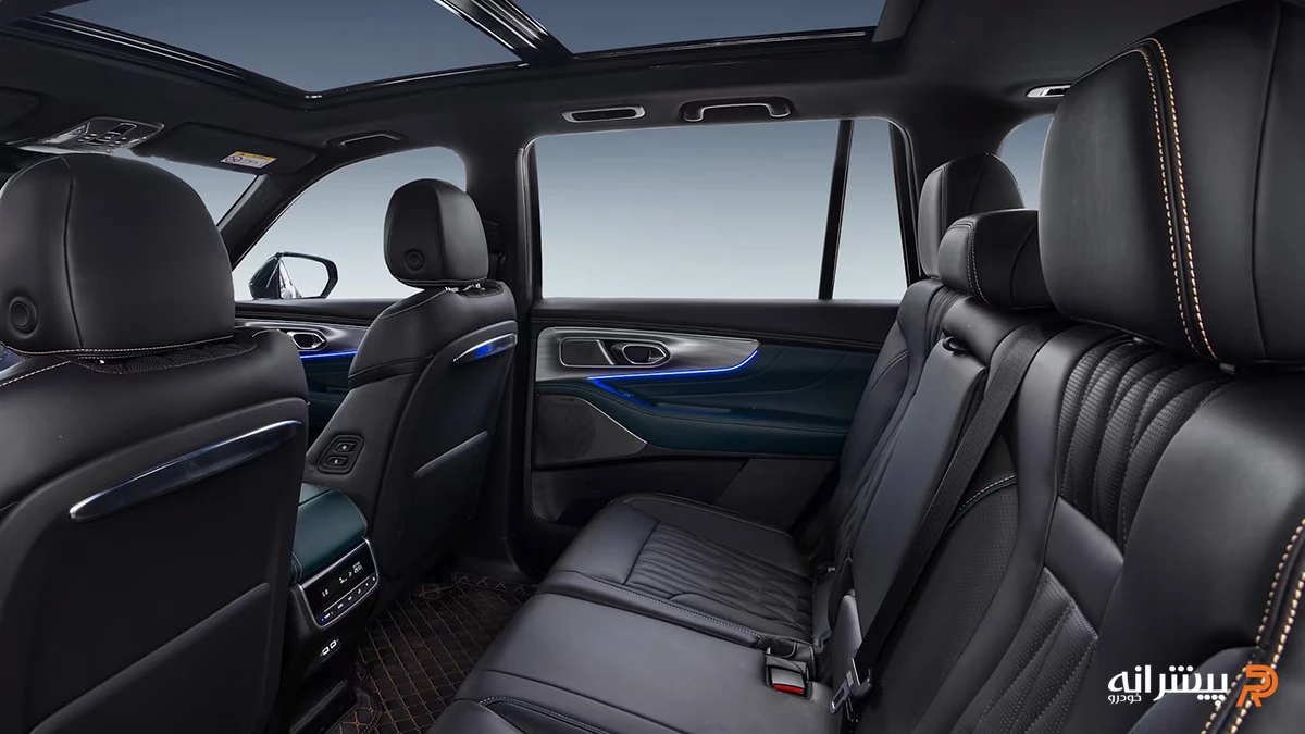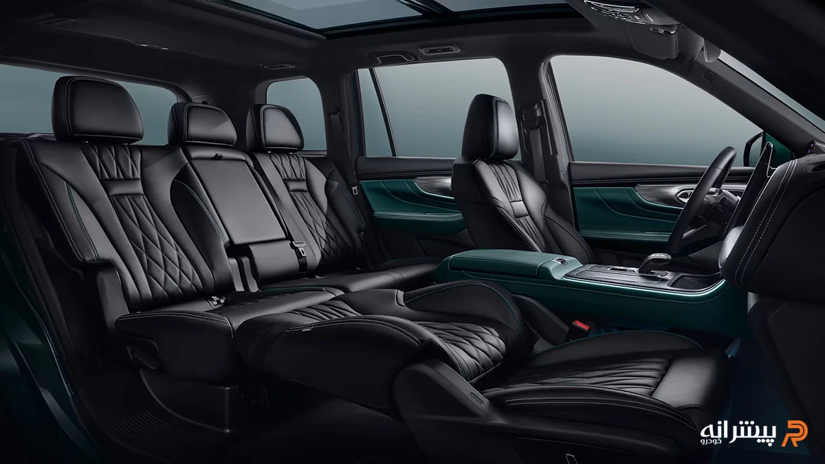 کیفیت متریال یکی از نکات قابلتوجه در فضای داخلی است. استفاده از تریمهای براق، پوششهای چرمی و متریال نرم در بخشهای مختلف، سطح ادراک کیفیت را افزایش داده است. طراحی فرمان سهشاخه، کنسول میانی منظم و دستهدنده با فرم مدرن نیز در راستای همین رویکرد قرار دارند.