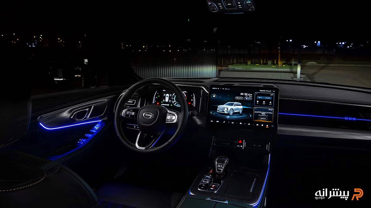 کابین GS8 با هدف ارائه فضایی نزدیک به خودروهای رده بالاتر طراحی شده و تمرکز اصلی آن روی جزئیات و حذف عناصر سنتی است. در نگاه اول، داشبورد ممکن است کمی شلوغ به نظر برسد، اما با حذف بخش زیادی از کلیدهای فیزیکی و انتقال کنترلها به نمایشگر مرکزی، ساختار مدرنتری ایجاد شده است. این رویکرد باعث شده کاربر برای دسترسی به تنظیمات مختلف به سیستم مالتیمدیا وابسته باشد.