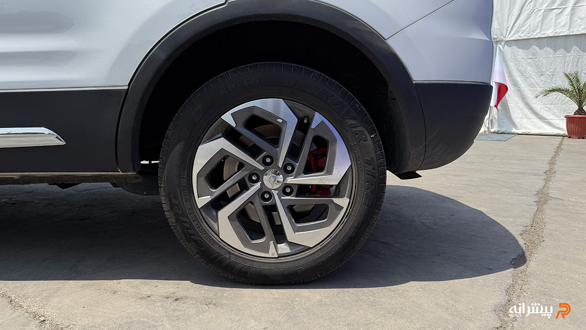 در نمای جانبی، رینگ های آلیاژی با طراحی جدید و خطوط برجسته بدنه، تلاش دارند پویایی بیشتری به ظاهر خودرو ببخشند. فلاپ های پلاستیکی اطراف گلگیرها نیز حس ارتفاع و استحکام را القا می کنند. در نمای عقب، تغییرات اندکی شامل اضافه شدن نشان “PRO” به لوگوی خودرو دیده می شود. در مجموع، طراحی بدنه قدیمی و کم تغییر مانده است و اگرچه در زمان خود پذیرفتنی بود، اکنون در رقابت با طراحی های به روز چینی، کمی عقب تر ایستاده است.