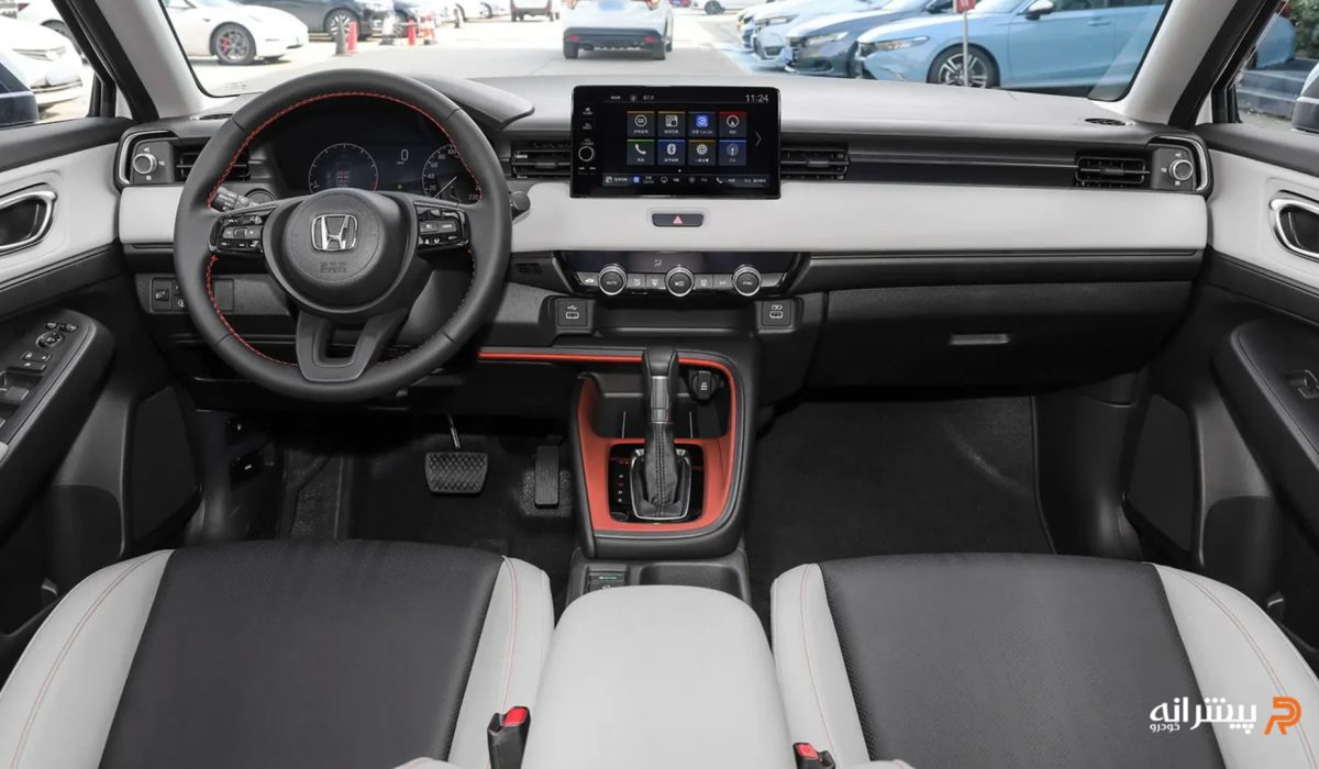 طراحی داخلی هوندا وزل ساده و کاربردی است و از متریال با کیفیت متوسط بهره می برد. داشبورد با پلاستیک خشک اما مقاوم ساخته شده و نمایشگر لمسی سیستم مالتی مدیا در بخش بالایی قرار گرفته است. کلیدهای تنظیم تهویه مطبوع به صورت کلاسیک طراحی شده اند و کروم کاری ها حس لوکس تری ایجاد می کنند. کنسول مرکزی با اجزای مینیمال و رنگ مشکی پیانویی، دسترسی آسان به کنترل ها را فراهم می کند.