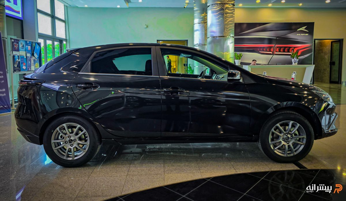 در نمای جانبی، خطوط ساده و بدون پیچیدگی بیش از حد، به همراه رینگ های ۱۶ اینچی آلومینیومی، تناسب خوبی با ابعاد خودرو دارند، هرچند نبود خط شانه قوی ممکن است کمی از جذابیت بصری بکاهد.