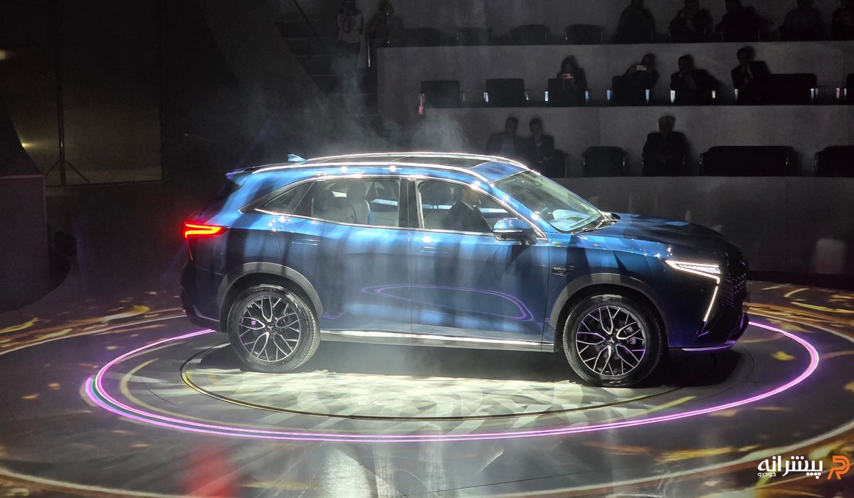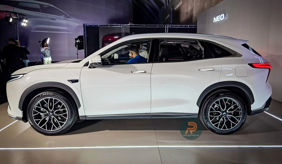 در نمای جانبی، بدنه با خطوط نرم و پویا همراه است و سقف با شیب ملایم به سمت عقب امتداد مییابد. نوار کرومی زیر شیشهها، رکابهای برجسته و رینگهای آلومینیومی ۱۸ اینچی، نمایی دینامیک ارائه میدهند. دستگیرههای مخفی دربها نیز به مدرن بودن طراحی کمک میکند، هرچند مواد پلاستیکی در برخی بخشها ممکن است حس اقتصادی بودن را منتقل کند. فاصله محوری ۲۸۲۰ میلیمتری نه تنها تناسبات بصری را بهبود میبخشد، بلکه به ثبات حرکتی در جاده کمک میکند.