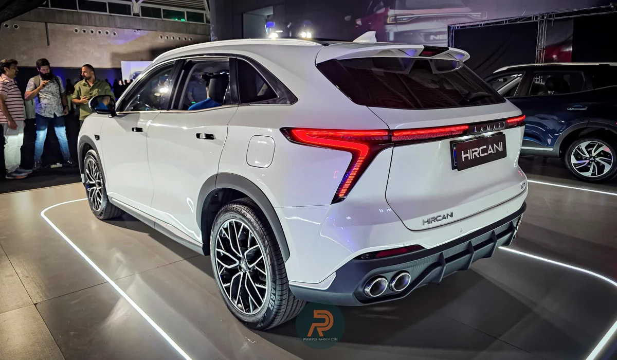 طراحی بیرونی لاماری هیرکانی ترکیبی از خطوط تیز و عناصر مدرن را به نمایش میگذارد که آن را از مدلهای سادهتر متمایز میکند. در نمای جلو، جلوپنجره بزرگ مشبک با قاب کرومی باریک و چراغهای LED باریک و کشیده، ظاهری تهاجمی ایجاد کرده است. این عناصر با خطوط روی کاپوت هماهنگ هستند و حس عرض بیشتر را القا میکنند، در حالی که سپر جلو با ورودیهای هوای جانبی، جنبه اسپرت را تقویت میکند.