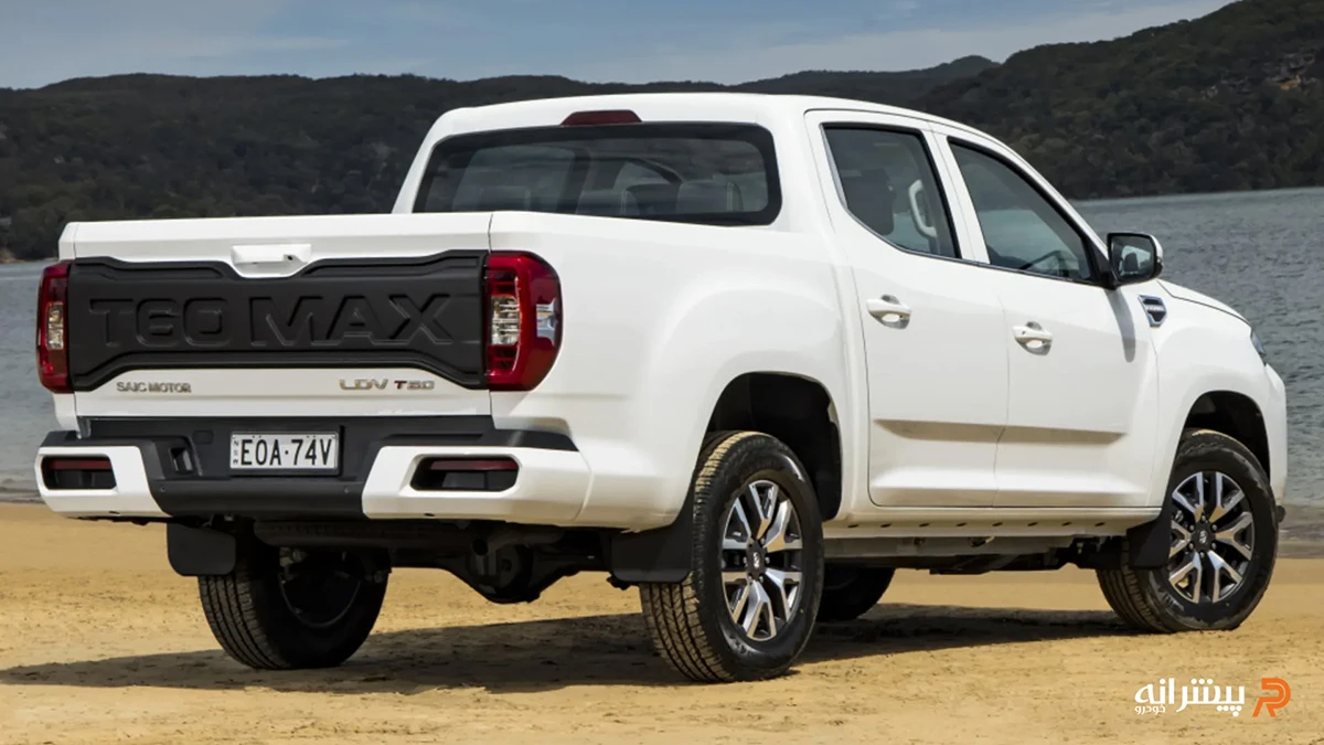 ابعاد بدنه برابر ۵۳۹۵ میلیمتر طول، ۱۹۶۰ میلیمتر عرض و ۱۸۵۵ میلیمتر ارتفاع است و فاصله محوری آن به ۳۱۶۵ میلیمتر میرسد که فضای کابین و بار مناسبی فراهم میکند. رینگهای ۱۸ اینچی با تایرهای ۲۵۵/۶۰ و ارتفاع مناسب از سطح زمین، ظاهری آفرودی به خودرو دادهاند. در عقب، چراغهای متصل با گرافیک ساده و سپر مقاوم دیده میشود. در مجموع طراحی بدنه ترکیبی از مدرنیته و کارایی است و نسبت به نسل قبلی (T90) پیشرفت قابل توجهی داشته است.