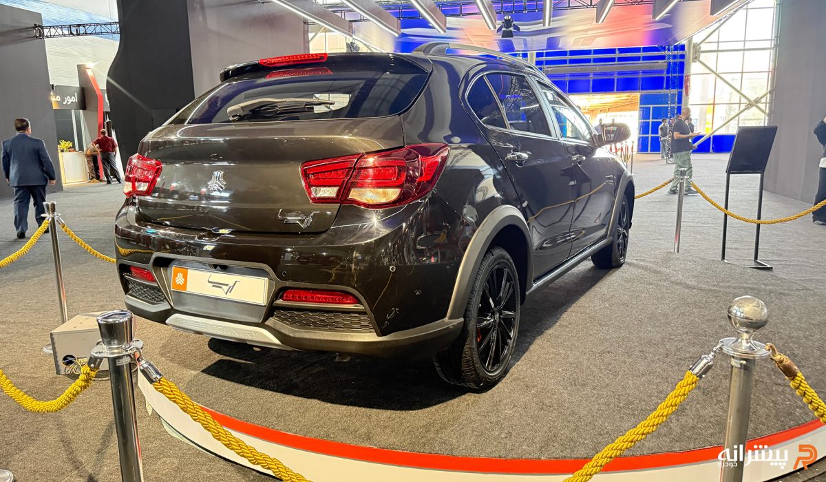 در نمای جانبی، خطوط نرم بدنه همراه با روف رک و فلاپ های پلاستیکی مشکی، ارتفاع بیشتر از سطح زمین را برجسته می کند و رینگ های ۱۷ اینچی آلومینیومی با تایرهای ۲۰۵/۵۰R۱۷، تعادل بصری مناسبی ایجاد می کنند. نمای عقب با چراغ های بزرگ و گرافیک خاص، هماهنگ تر از شاهین به نظر می رسد، هرچند برخی منتقدان طراحی آن را ساده می دانند. بدنه دو رنگ قابل انتخاب و شیشه های عقب دودی، گزینه هایی برای شخصی سازی هستند، اما کیفیت رنگ و مونتاژ بدنه هنوز نیاز به ارزیابی در تولید انبوه دارد.