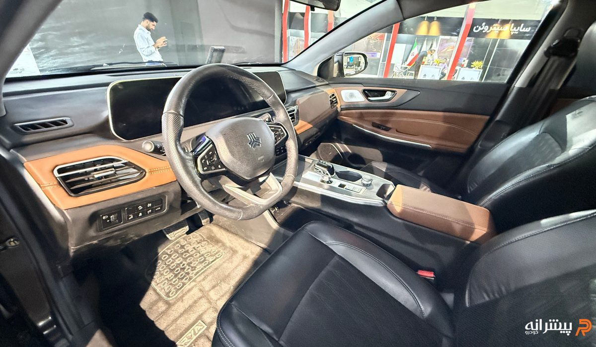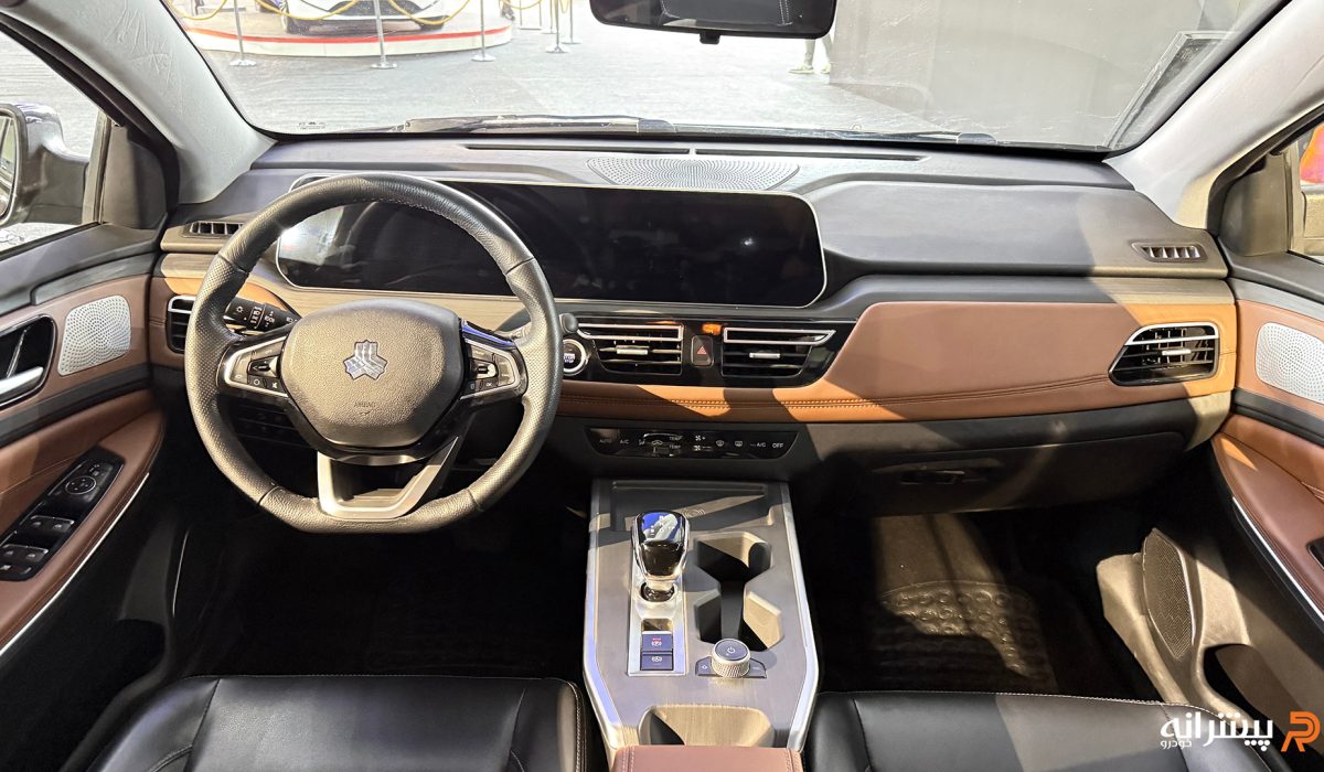 فضای کابین جادار است و با فاصله محوری ۲۶۵۰ میلی متری، راحتی مناسبی برای سرنشینان عقب فراهم می کند، هرچند ارتفاع سقف در بخش عقب ممکن است برای افراد بلندقد کمی محدود باشد. صندلی ها با روکش چرمی مصنوعی پوشیده شده اند و صندلی راننده قابلیت تنظیم برقی در شش جهت را دارد، در حالی که صندلی سرنشین جلو به صورت دستی در چهار جهت تنظیم می شود. صندوق عقب با حجم ۲۸۵ لیتر برای نیازهای روزمره کافی به نظر می رسد. ارگونومی کلی قابل قبول است و دسترسی به کنترل ها آسان، هرچند کیفیت برخی پلاستیک ها هنوز متوسط ارزیابی می شود و ممکن است در بلندمدت علائم فرسودگی نشان دهد.