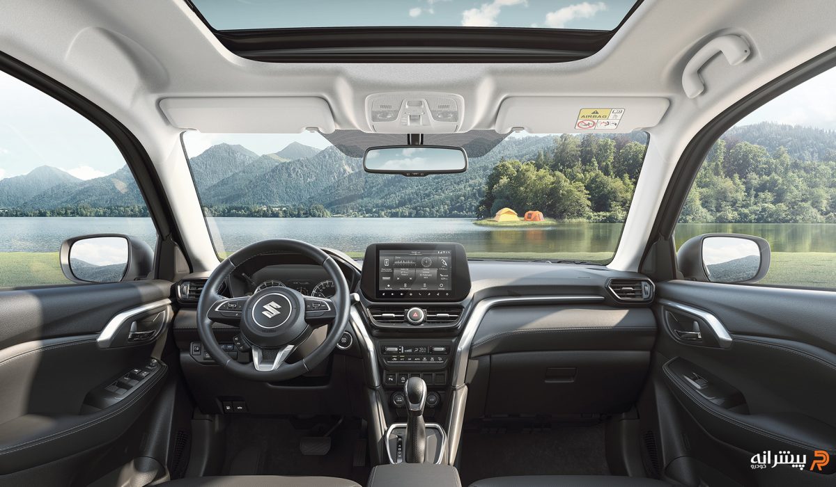فضای کابین گرند ویتارا ۲۰۲۴ ترکیبی از سادگی و کارایی را ارائه می دهد. داشبورد با سبک طراحی الهام گرفته از محصولات تویوتا، ساختاری منظم و متقارن دارد و نمایشگر لمسی ۹ اینچی به صورت ایستاده در مرکز آن قرار گرفته است. کیفیت متریال به طور کلی متوسط ارزیابی می شود؛ استفاده از پلاستیک سخت در بخش هایی مشهود است اما قسمت هایی از داشبورد و تودری ها با پوشش چرم مصنوعی نرم تزیین شده اند.