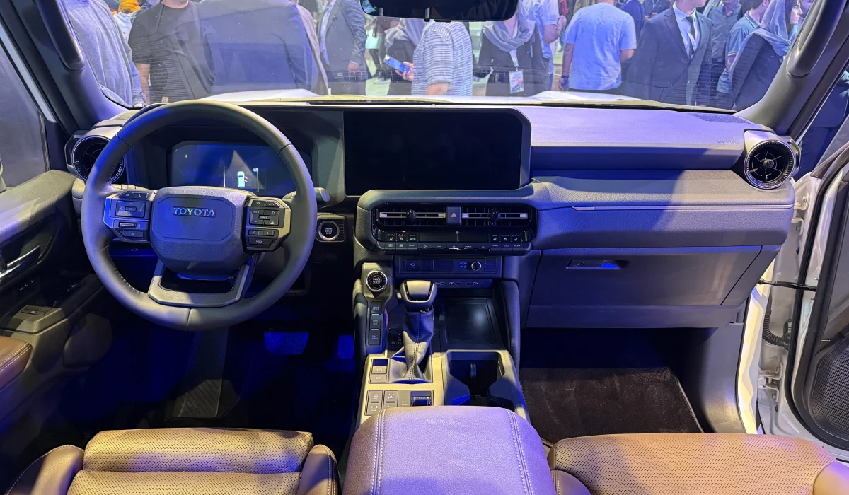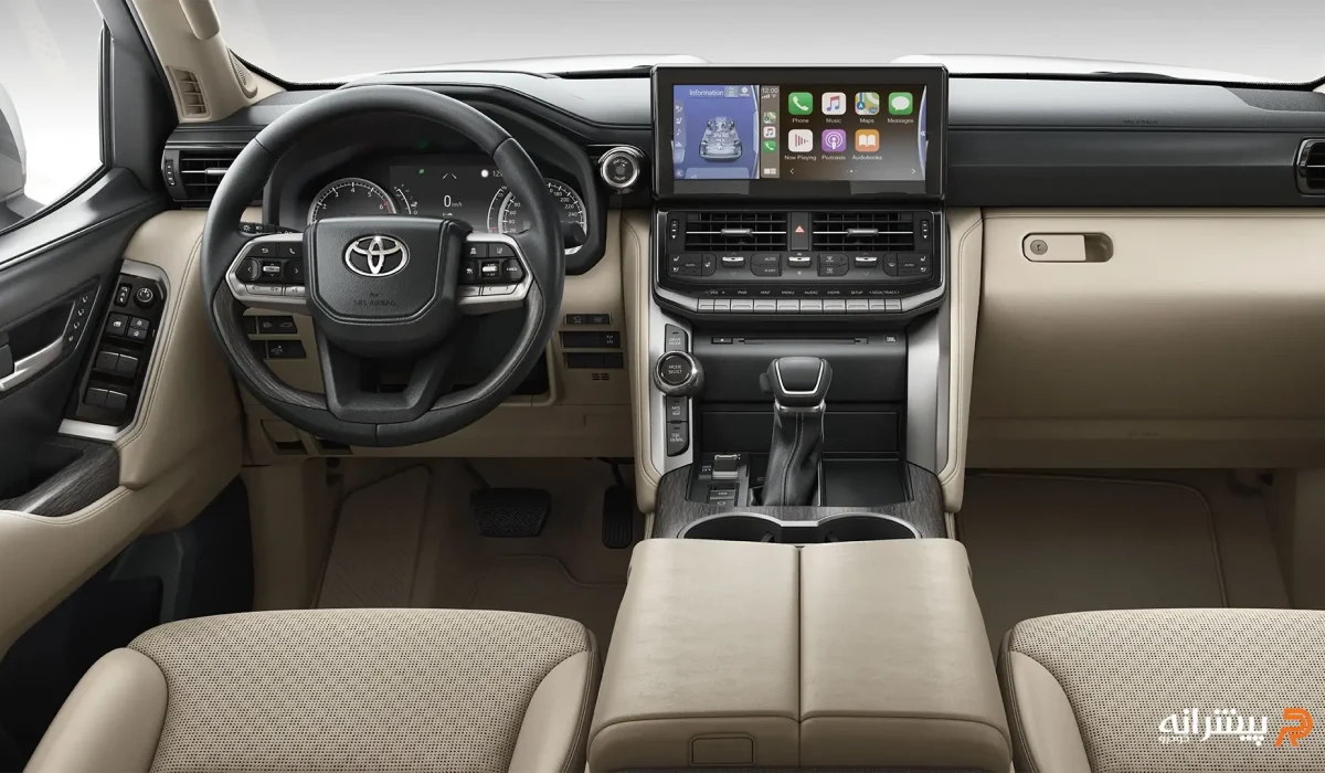 کابین تویوتا لندکروزر سری ۳۰۰، جادار و کاربردی طراحی شده و ظرفیت ۷ نفره با چیدمان صندلی ۲-۳-۲ را ارائه می دهد. فضای پا در ردیف سوم، هرچند محدود، نسبت به کراس اوورهای مشابه بهتر است. صفحه نمایش افقی سیستم اطلاع رسانی در مرکز داشبورد قرار گرفته و جلوآمپر نیمه دیجیتال است. تویوتا همچنان به دکمه های بزرگ و فیزیکی پایبند مانده که دسترسی آسان در شرایط آفرودی را فراهم می کند.