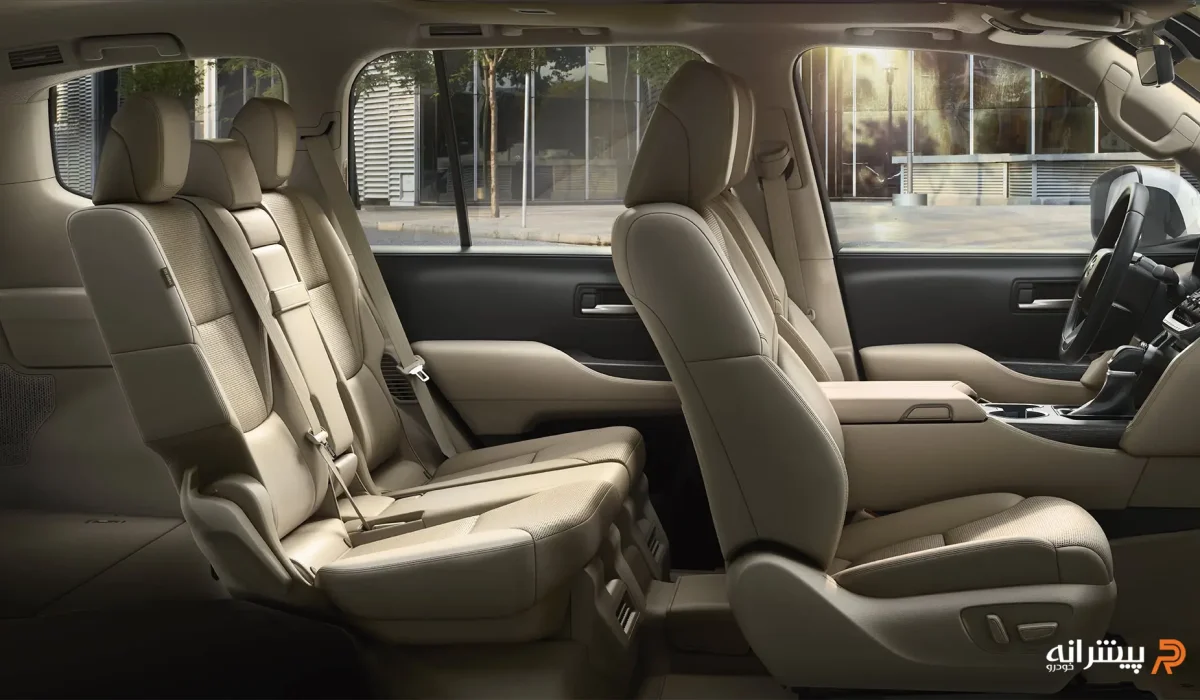 متریال داخلی از کیفیت مناسبی برخوردار است، هرچند در مقایسه با نسل قبل، کمی ساده تر به نظر می رسد. تهویه اتوماتیک برای ردیف عقب، سواری را برای سرنشینان عقب راحت تر می کند. فاصله محوری ۲۸۵۰ میلی متر، فضای داخلی وسیعی ایجاد کرده و صندوق عقب نیز ظرفیت مناسبی دارد.