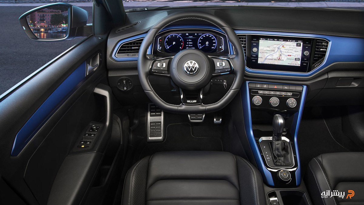 فضای داخلی فولکس واگن تی راک با تمرکز بر کاربردی بودن و کیفیت ساخت بالا طراحی شده است، اما در عین حال، نشانه هایی از اقتصادی بودن این خودرو در مقایسه با محصولات لوکس تر گروه فولکس واگن مانند آئودی دیده می شود. کابین تی راک با استفاده از متریال با کیفیت مانند پلاستیک نرم و بافت دار، حس دوام و راحتی را به سرنشینان منتقل می کند، در حالی که تزئینات کرومی و پیانو بلک در بخش هایی از داشبورد و درها، جلوه ای مدرن به آن می افزاید. نمایشگر لمسی ۸ تا ۹.۲ اینچی سیستم اطلاعات و سرگرمی در مرکز داشبورد قرار گرفته و به راحتی در دسترس راننده و سرنشین جلو است، در حالی که کلاستر دیجیتال ۱۰.۳ اینچی، اطلاعات رانندگی را با وضوح بالا نمایش می دهد. طراحی ارگونومیک کنسول میانی، دسترسی به دکمه های کنترل سیستم تهویه و اهرم دنده را آسان کرده و فرمان سه شاخه دی کات با دکمه های لمسی، حس مدرنیته را تقویت می کند.